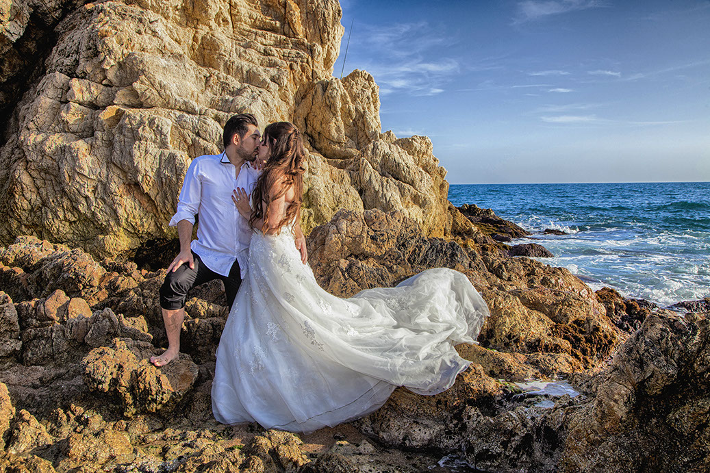 Clips divertidos SAVE THE DATE, para invitaciones en vídeo o TRASH THE DRESS para una inolvidable sesión de fotos en la playa.